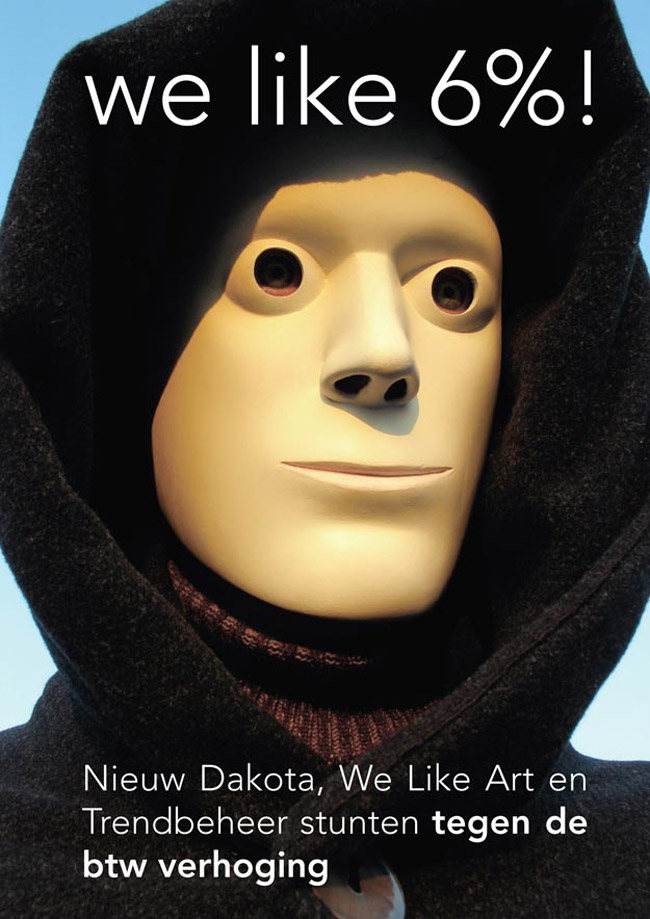 An exhibition, organized by We Like Art, Nieuw Dakota and Trendbeheer, as a protest against the planned tax increase on art from 6% to 19% next year. Two works from the series Groups (2009) will be on display. All of the exhibited works will also be for sale: take adventage of 13% tax profit!